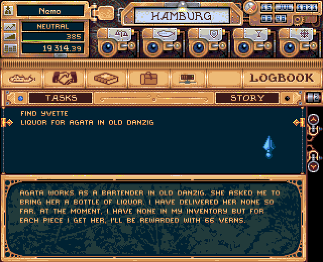 - add:After six years in use, the acclaimed AC Dialogue System has been upgraded from version 1.0 to 2.0. Although visually nothing has changed, internally it is a huge leap. It is much faster, especially at sea resulting in better performance on slower CPUs. Benchmark shows that traveling at sea in the story mode is ~2.4 times faster on a 030 25 MHz! (or ~140%)). The file structure has changed and now each language has its own drawer with corresponding files. Dialogs are loaded and removed from memory dynamically and are easier to handle. The new system has much better support for the story mode (sorry it took so long, but some elements of the game and code need to be properly addressed before we could move forward with this [admittedly] very important aspect. But the wait should be rewarded with a very useful feature, absent from the game so far, giving the player a good insight into the progress of the storyline). Another cool feature of the new dialogue system is that modders will be allowed to add their own dialogue events in the future! Yes, a side quest/story can be created and added to the game.