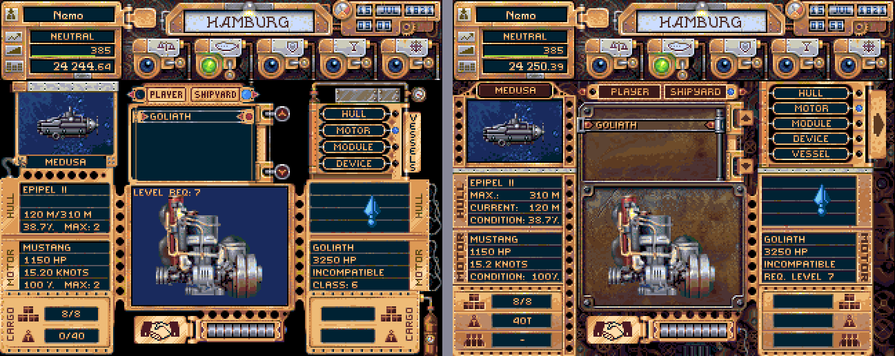 - add:Animated panel change in the shipyard (info panels HULL, MOTOR, and MODULES slide up and are being replaced by the harpoon launcher(s) panel and vice versa).