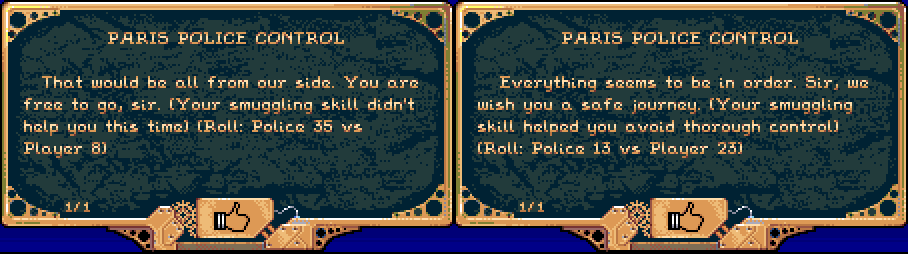 - add:During police control at sea, the attributes LUCK and SMUGGLING are used with a corresponding message.